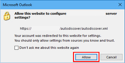 If prompted by Autodiscover, users are advised to click “Allow”.