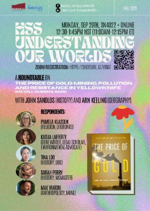 TODAY! Monday, September 29th from 12:30-1:45pm: A Roundtable on The Price of Gold (McGill Queen’s, 2025) with co-authors John Sandlos (HIST) and Arn Keeling (GEOG), SN4022 and online