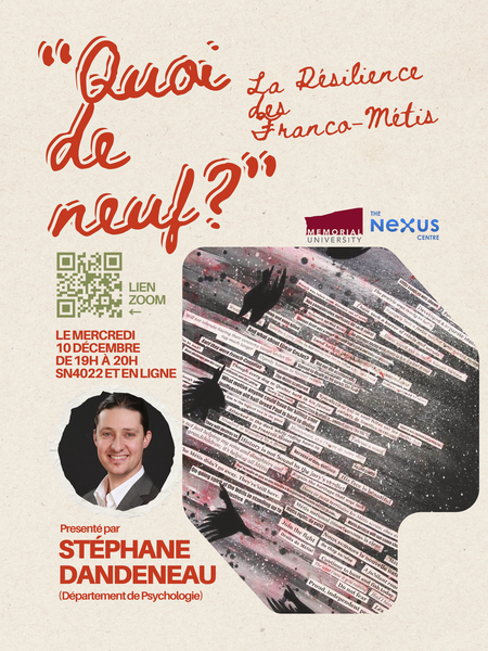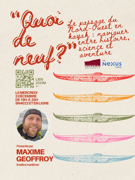 Join us for this public-facing lecture series, funded by the French Services Grant Program under the Minister Responsible for Francophone Affairs with the Government of Newfoundland and Labrador. Many more lectures will be announced shortly. Follow us on Instagram.