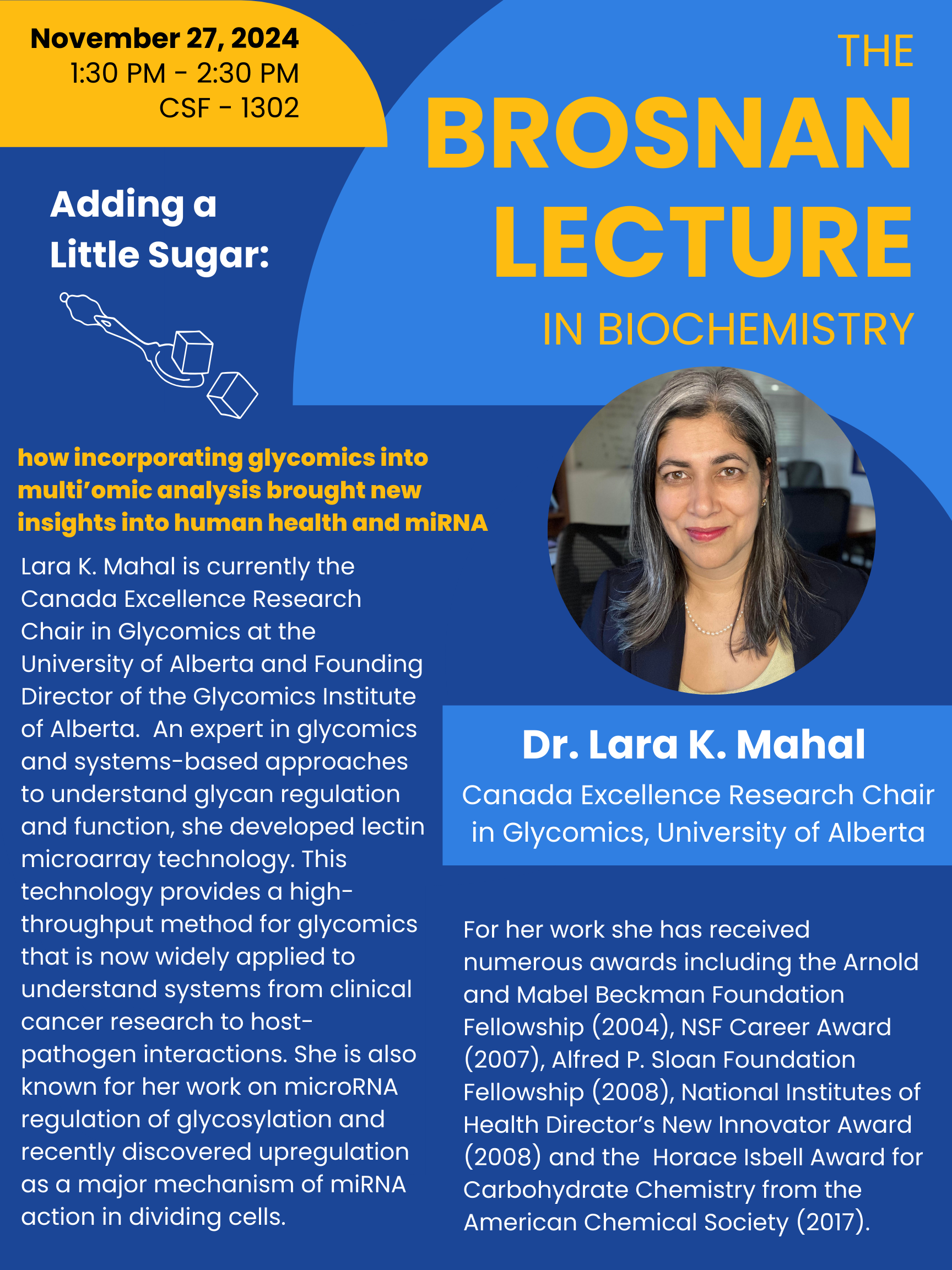 The Department of Biochemistry proudly presents the 2024 Brosnan Lecture in Biochemistry.