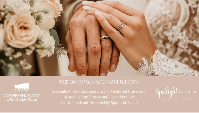 The Conference and Event Services team is available to help couples with the details of the big day on a case-by-case basis - as much or as little as you need! Contact meet@mun.ca to find a plan for you.