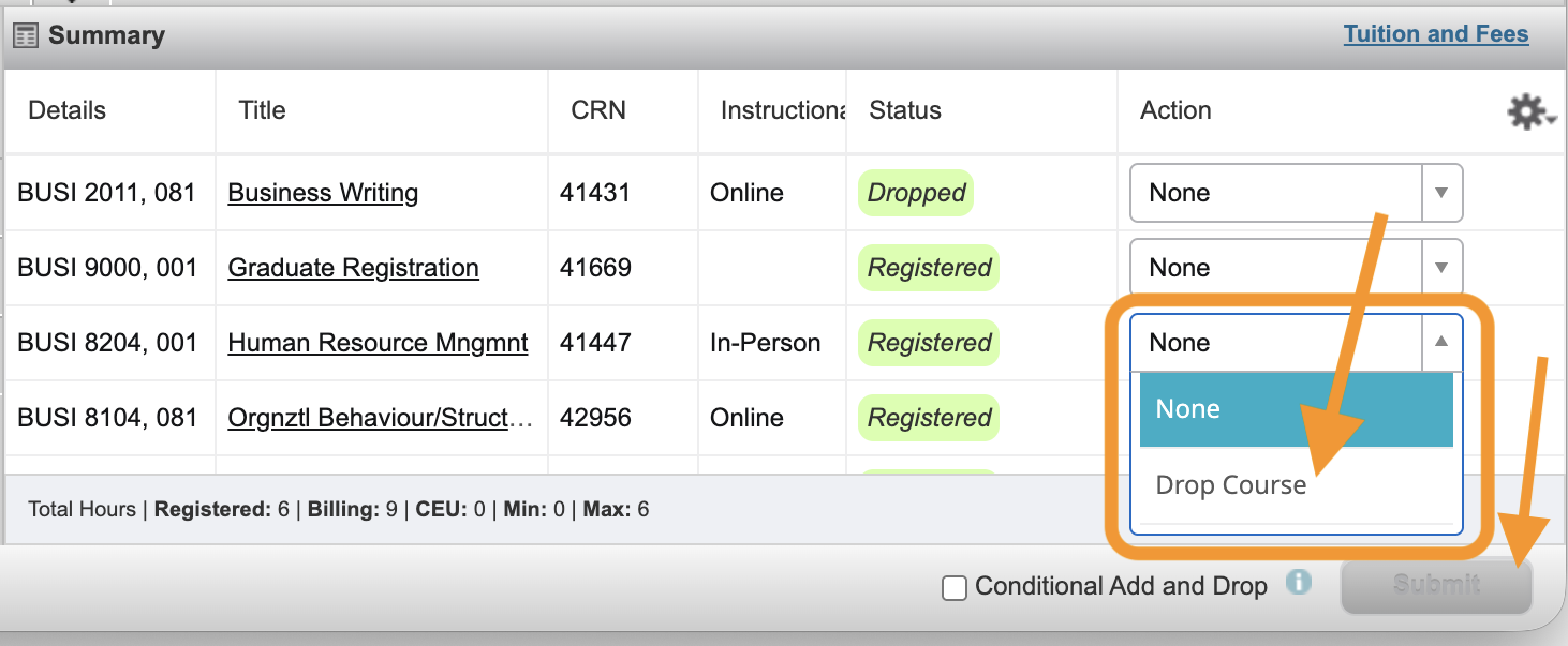 You should also review the information on changes to your registration, paying particular attention to deadlines, processes to drop and the academic/financial impacts depending on the time in the semester in which you drop a course.