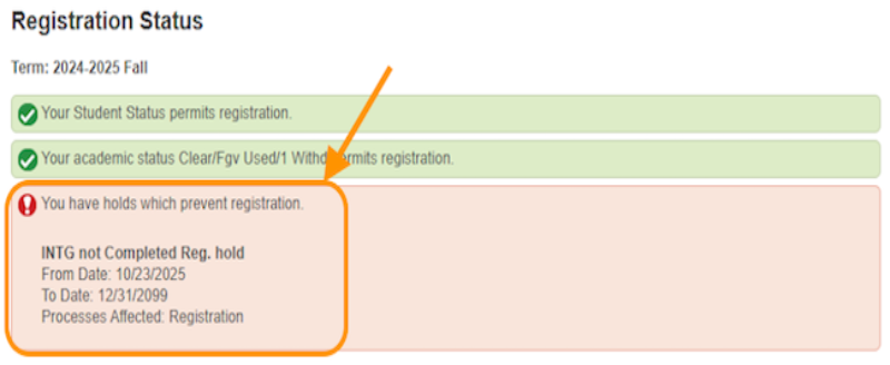Below are some of the most common registration holds that may prohibit you from being able to register for courses. In most cases there may be a course of action for you to take to resolve the issue.