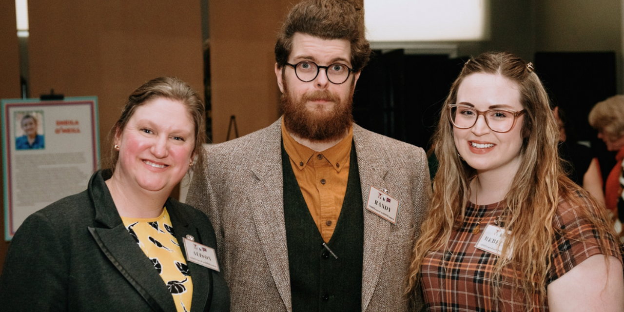 Alison Carr, Randy Drover (MUPress sales and marketing co-ordinator) and Rebecca Roberts (Breakwater Books) at the 100 Women 100 Votes event co-hosted by Breakwater, MUPress and EqualVoiceNL in April 2025. Photo courtesy of Alison Carr.