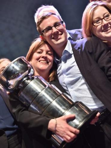 Lynn Morrissey (centre) and the Enactus Memorial team, runners up in the 2017 World Enactus Cup. Photo from Memorial University Archives.
