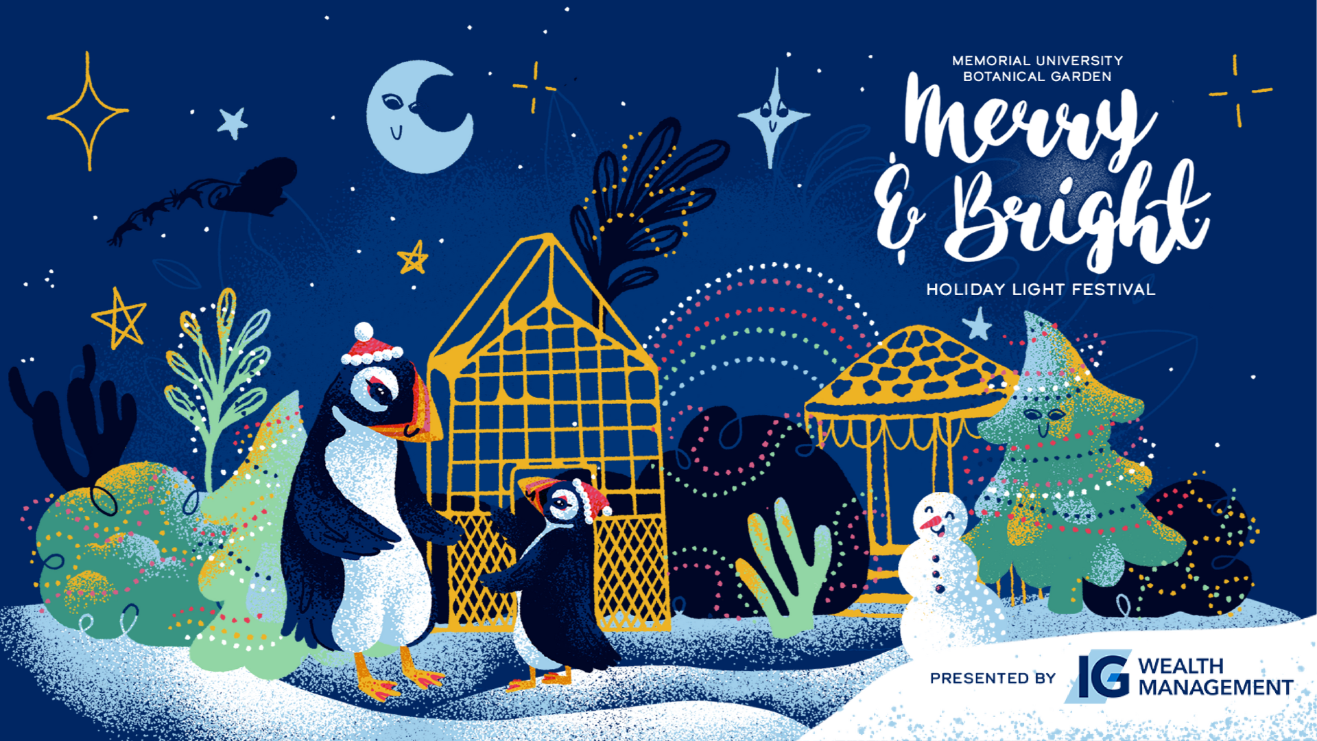 Memorial University Botanical Garden invites you to join us for our 9th annual Merry & Bright Holiday Light Fest. This annual event has become a treasured family tradition and is the perfect way to start the holiday season. Running from Nov. 30-Dec. 22, the Light Festival features creative displays of well over 100,000 lights, as well as light up characters and creatures, festive music, a bonfire, memory candle station, hot chocolate and cookies for purchase, and special choral entertainment on select nights. Walk through nature transformed into a holiday wonderland of lights, music, and joy!