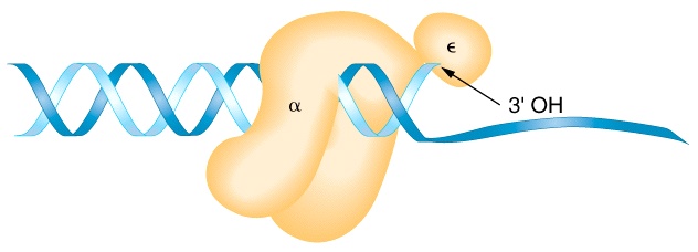 [dark blue ribbon]. Unlike DNA synthesis, RNAPol