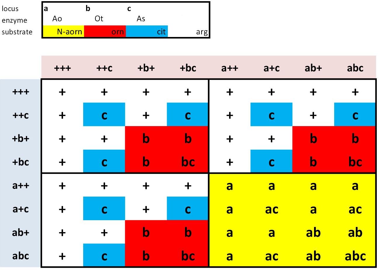 diploid Arginine biosynthesis pathway: trihybrid cross