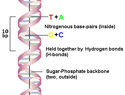 molecule. It consists of two sugar-phosphate backbones on the outside, held
