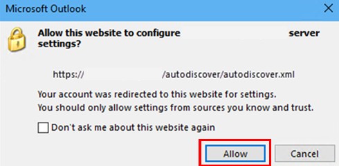 If prompted by Autodiscover, users are advised to click “Allow”.