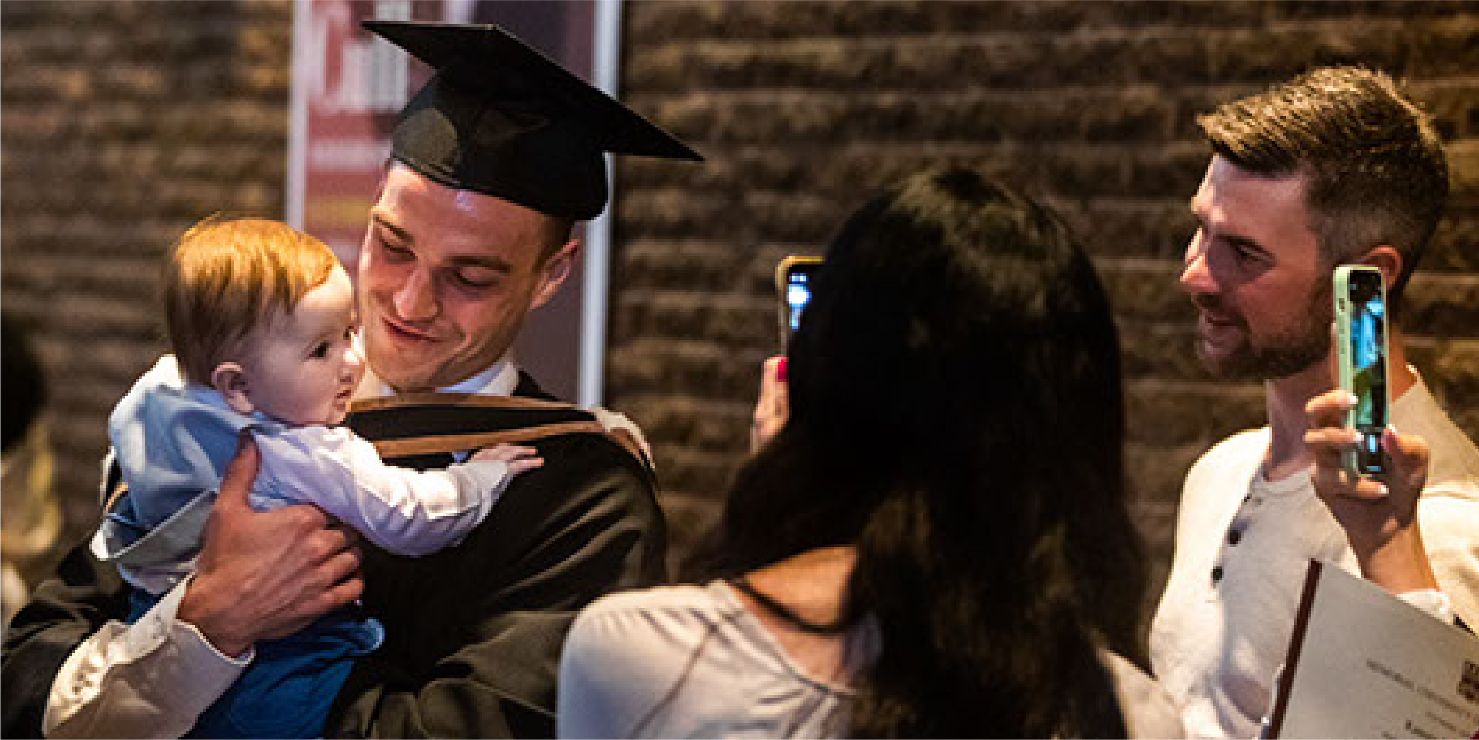 Children are welcome at the ceremony but must remain with guests until the event ends. Graduates will be seated together in the front section, and children will not be allowed to sit among them or cross the stage with a graduate.