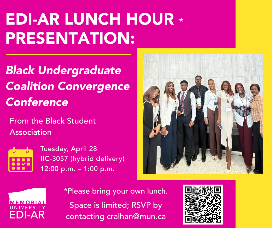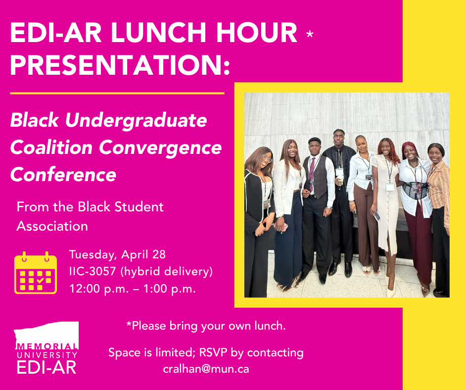 Join us at the next EDI-AR Lunch Hour where members of the Black Student Association will speak about their experiences at the BUC Convergence Conference!