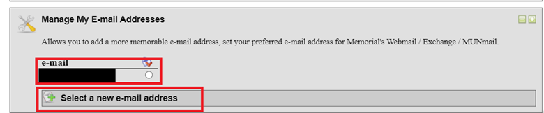 If you’d like to change your @mun.ca e-mail address to something more memorable, you can do so through my.mun.ca. The new email name will appear as the “from” address on your Webmail and Outlook.