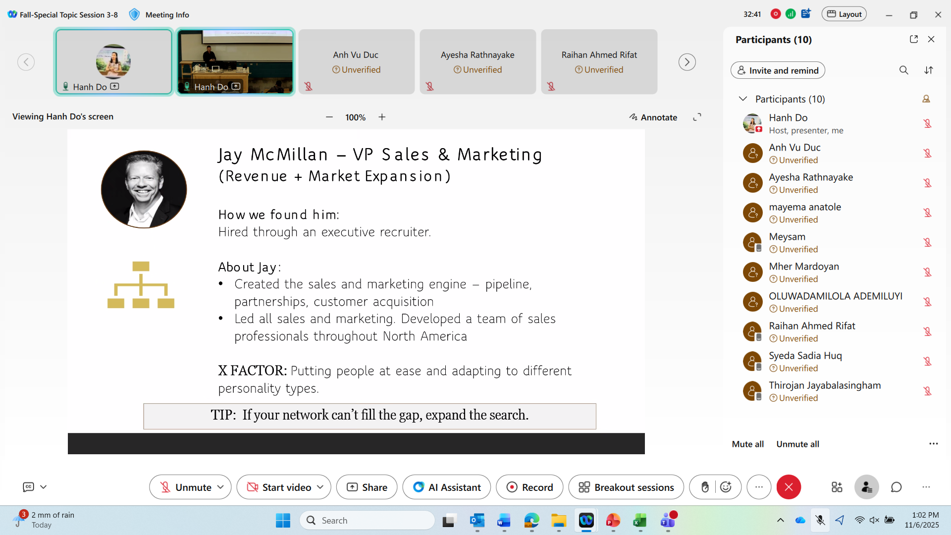 On November 6, 2025, the Entrepreneurship Training Program, Discover Fall 2025, hosted a session titled "Tips on Skills Identification & Team Building." Many thanks to Danny Tuff, President and CEO, Groundwork Solutions Inc., for his helpful and excellent presentation! ETP participants engaged highly during this session.
