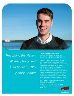 - Chris Greencorn presents "Recording the Nation: Women, Race, and Folk Music in 20th-Century Canada"