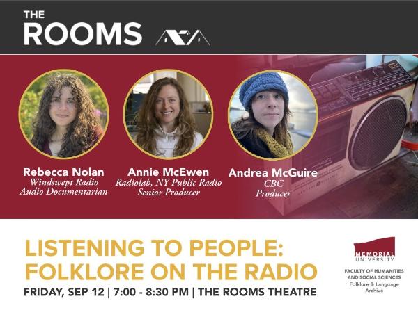 On Friday, September 12, 2025 the Memorial University Folklore and Language Archive (MUNFLA) presented a public roundtable about folklore and archival research in radio and podcast productions, featuring graduates of Memorial University's Folklore Department.