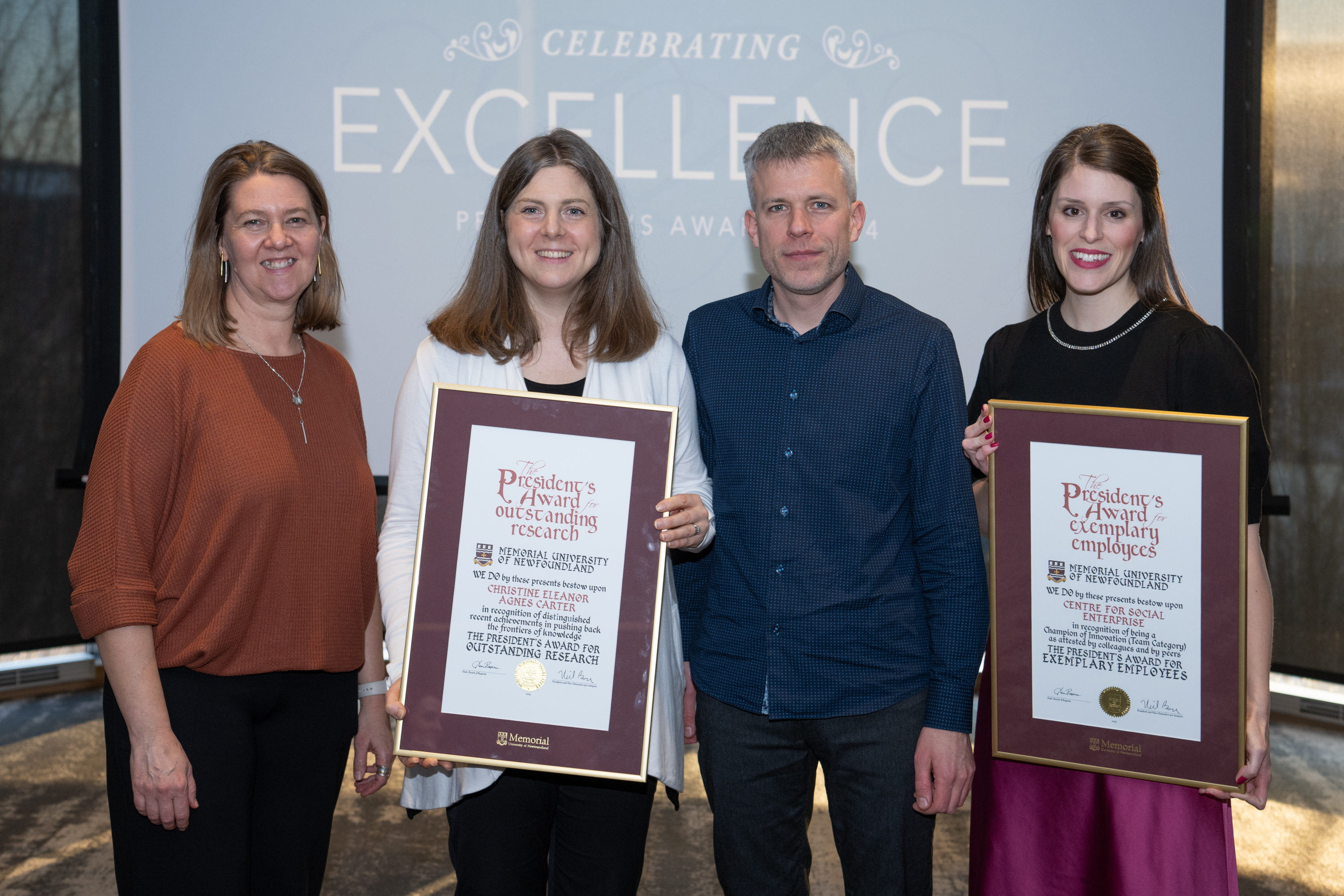 Congratulations to faculty member Dr. Christine Carter and alumna Dr. Gillian Morrissey at the Centre for Social Enterprise on recently being honoured with President’s Awards from Memorial University!