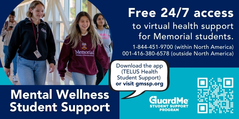 This free service program is available 24/7 to all full-time and part-time undergraduate and graduate students enrolled at Memorial University who have paid their student fees.