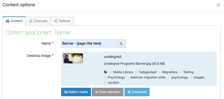 - Name: You should name your banner as follows: Banner - [the title of the page you are adding the banner to].