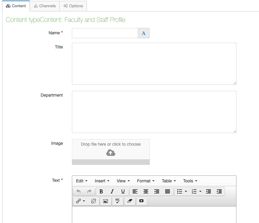 The faculty and staff profile content type allows you to easily create a staff or faculty listing.
