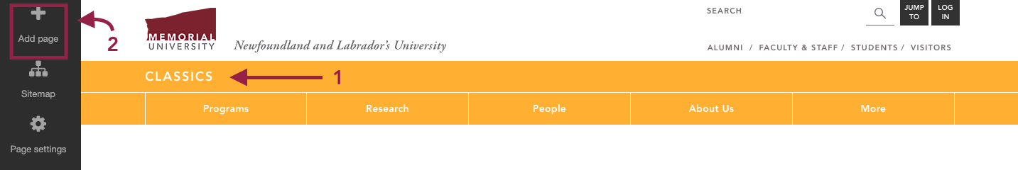 *Reminder: your site can display between 1-7 main menu tabs, and the number of tabs your site displays is set in your site settings. If you are going to add a new section to your main menu, it will not display until you put in a request to change the number of main menu tabs your site is displaying.