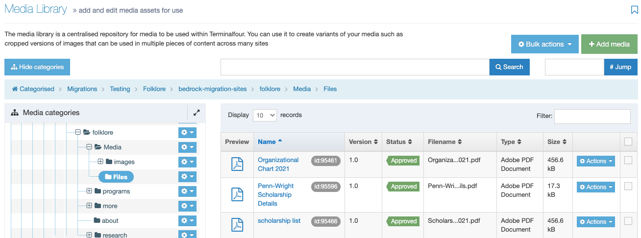 Once you've selected a folder to add your file to, click the green "+Add media" button in the top right corner: