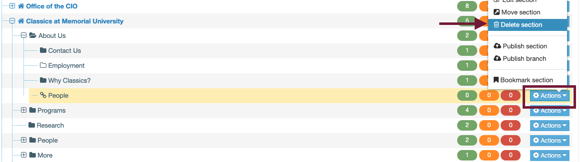 2 = The actual "People" section. To edit the People section, you would click here, not on your section link.