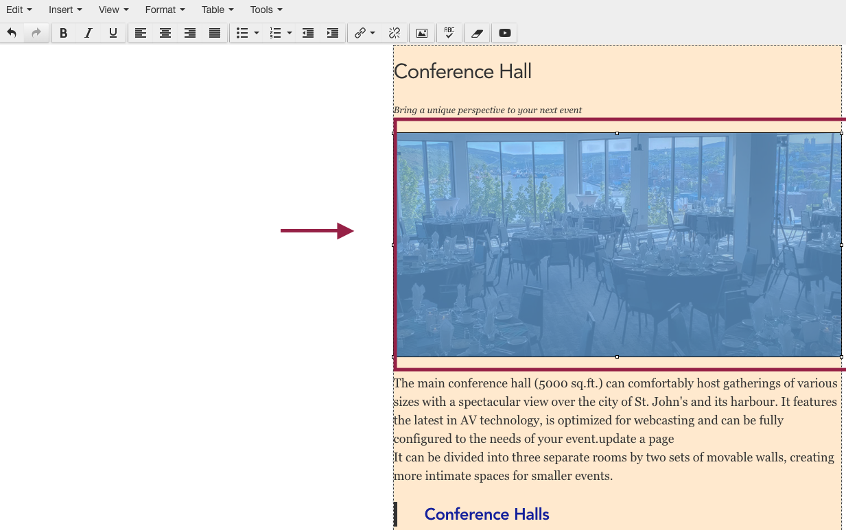 Click anywhere within the block that you want edit, and you will notice the editor bar appear on your screen. All of your text and images are now editable.