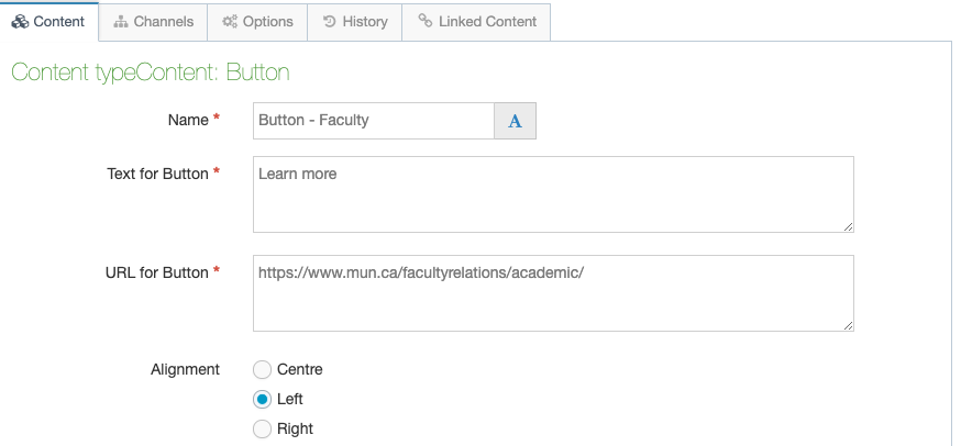 In the case of our button for example, you can now change the text on the button, or, the link someone is taken to when they click your button.