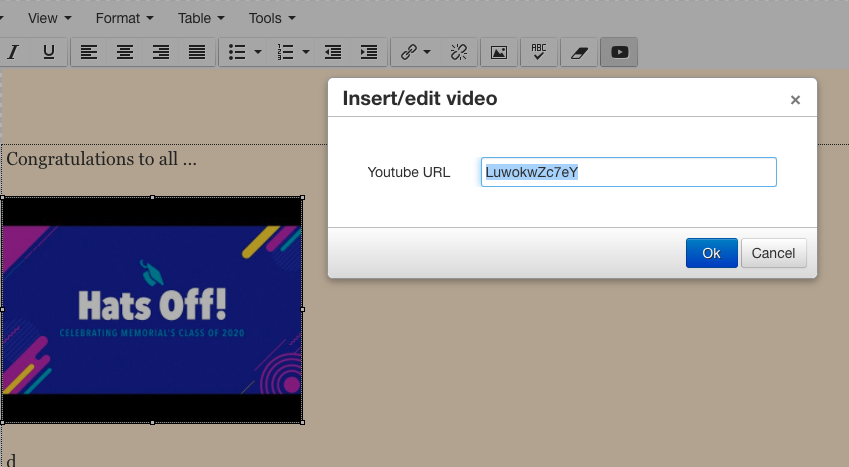 Simply delete this URL to the current video, and insert the URL to the new video, and click "ok."