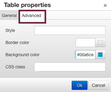 It is best to leave the "Style" and "CSS Class" fields as they are. It is also best to leave your background colour the default colour as well, to ensure your table is legible and in line with Memorial's web standards.