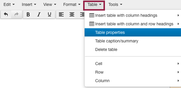However, you can make additional modifications to your table. To do so, click on your table to select it, and then click "table" in your editor menu.