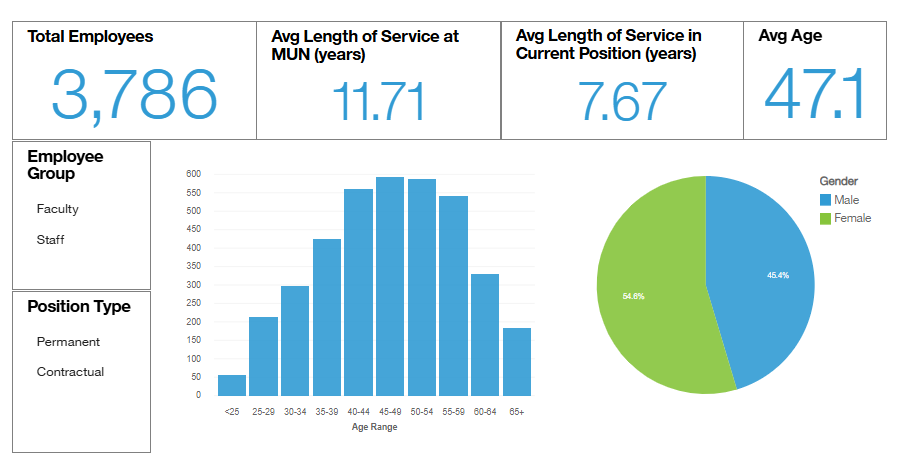 The total employee count is based on employees who have an active primary job. Included under faculty are academic administrators, faculty-MUNFA, faculty-non-bargaining, NAPE instructors (MI), per-course instructors, and post-doctoral fellows. Included under staff are executive, senior and middle management, support staff (non-bargaining), CUPE, NAPE-campus enforcement, NAPE-custodial, NAPE-maintenance, NAPE staff (MI). Please note, employee count includes part-time and full-time faculty and staff. Employees who are on long-term disability or leave without pay are not counted. Employees who are on a leave, but in receipt of full or partial pay are counted. Employees are counted only once. In the situation where an employee holds two or more positions within the university, the employee is categorized according to primary job. Permanent or contractual status is based upon the position budget type and does not reflect the status of the employee who may hold the position.